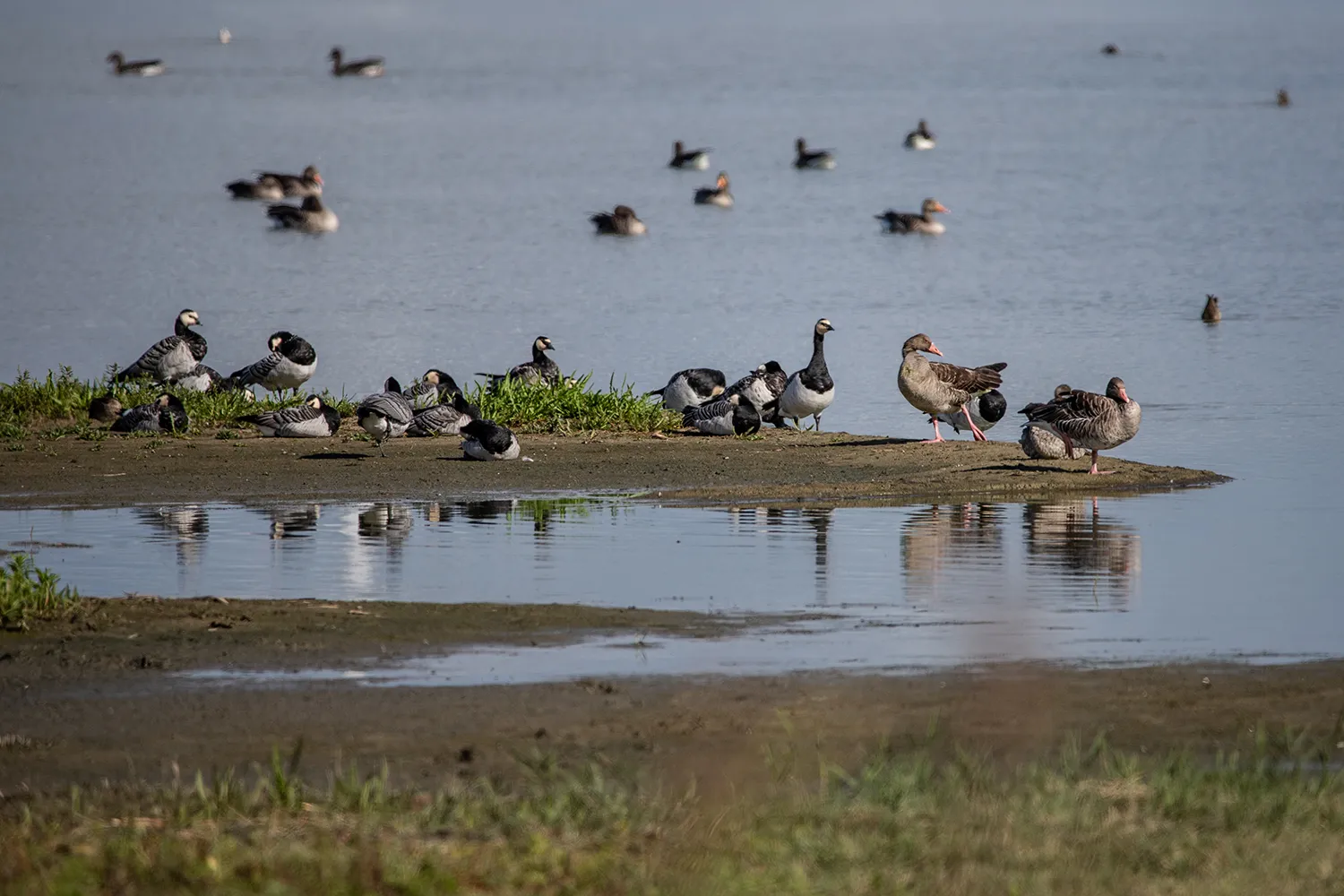 Der Beltringharder Koog ist eines der größten Naturschutzgebiete Schleswig-Holsteins und ein Paradies für Vogelbeobachter. Auf einer Fläche von rund 3.350 Hektar wechseln sich Süßwasserflächen, Salzwiesen und Schilfgürtel ab – ein perfekter Lebensraum für zahlreiche Arten. Besonders im Frühling und Herbst rasten hier zehntausende Zugvögel, darunter Weißwangengänse, Kiebitze, Austernfischer und sogar Seeadler.