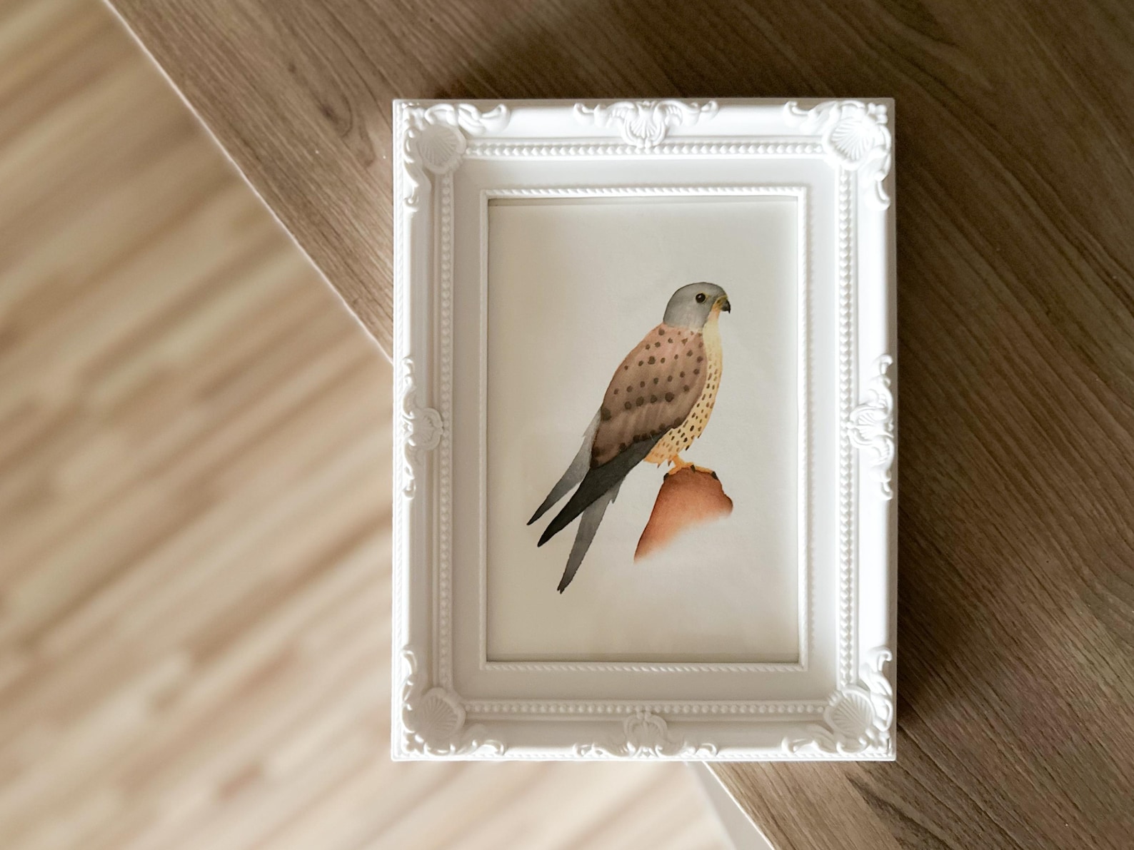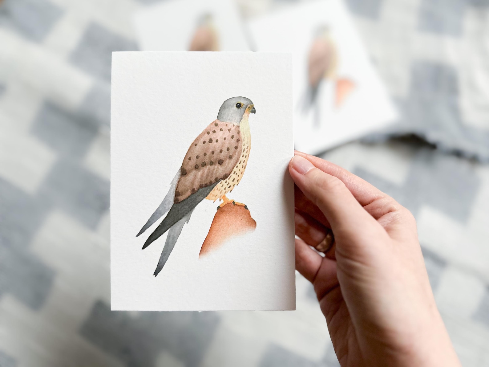 Eines meiner absoluten Herzensprodukte sind die hochwertigen Kunstdrucke meines selbst gemalten Turmfalken-Aquarells. Dieses habe ich nun endlich detailreich, farbtreu und auf edlem, strukturhaltigem Naturpapier gedruckt und als kleine Kunstwerke vervielfältigt.