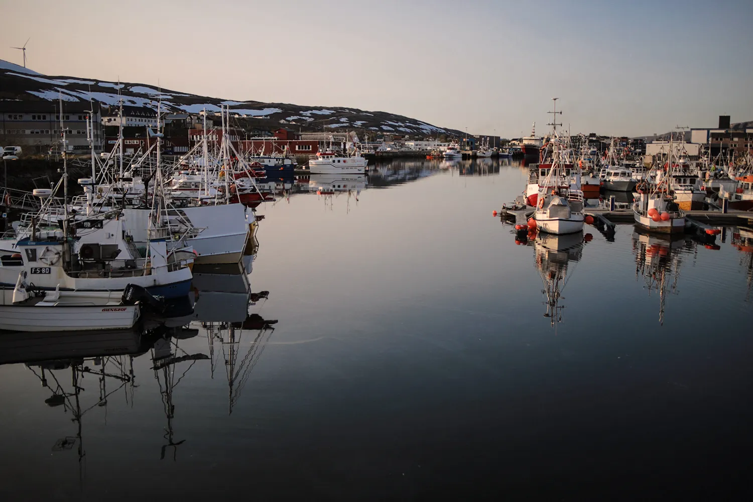 ℗ Schotterparkplatz in Hafennähe: GPS 70.380016, 31.118532