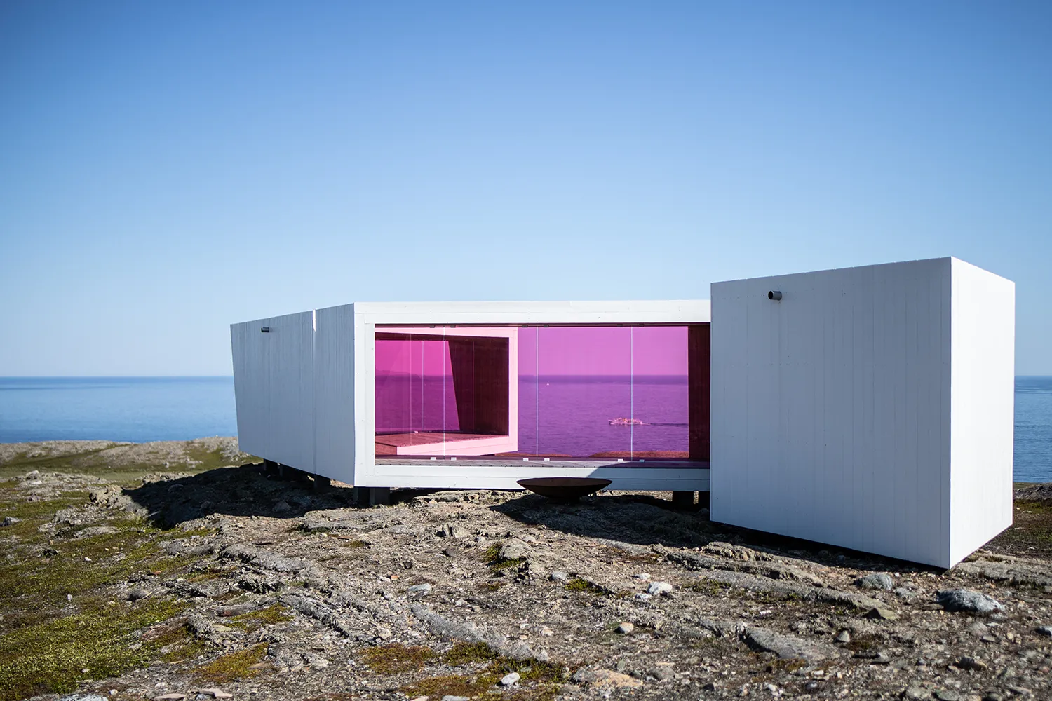 Heute befindet sich auf seinem Gipfel ein modernes Aussichtsgebäude, das Schutz vor Wind und Wetter bietet und gleichzeitig einen beeindruckenden Blick über Meer, Fjord und die Stadt Vardø eröffnet. Bestehend aus drei kleinen, winkelförmig angeordneten Gebäuden, findest du bei jeder Windrichtung ein windstelles Plätzchen. Neben Stahl und Holz fallen die auffälligen rosafarben getönten Fenster ins Auge, die verhindern, dass Vögel mit der Glasfläche kollidieren. Von hier oben lässt sich die Aussicht über die unendlichen Weiten der Barentssee genießen – und im Frühling fliegen oft in riesiges Vogelschwärmen übers Meer.