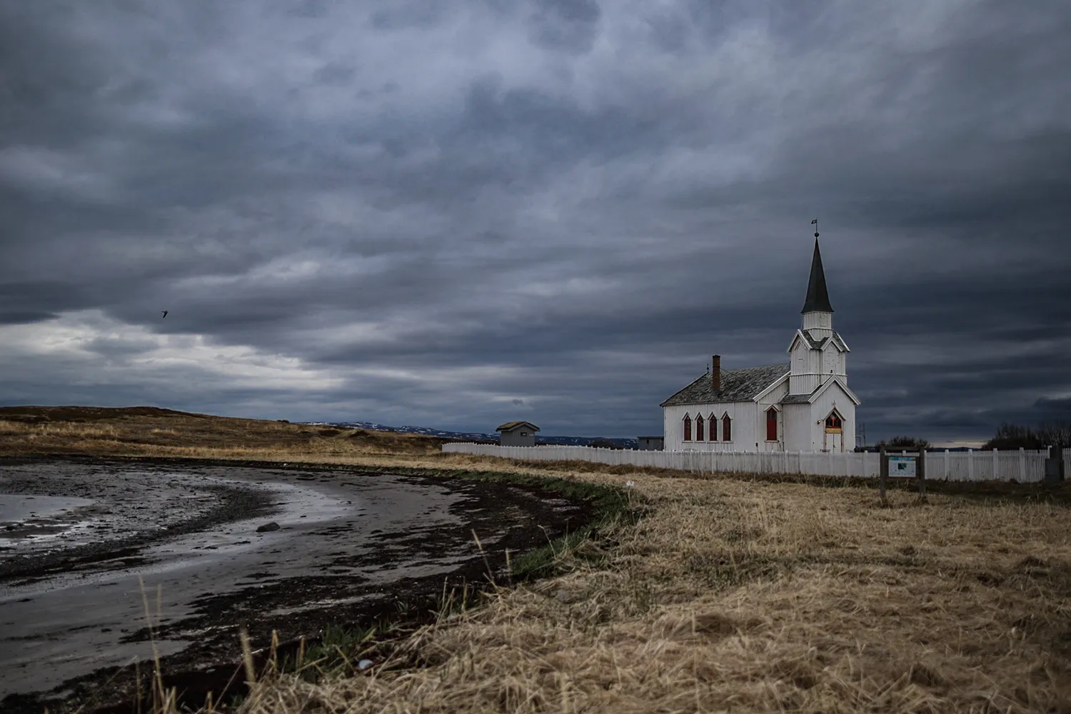 Bereits kurz nach dem Start liegt der Rastplatz Gornitak, ein restauriertes Steingebäude mit Kriegsvergangenheit. Wenige Kilometer weiter erreichst du die Kirche von Nesseby, eines der wenigen Gebäude, das den Zweiten Weltkrieg unbeschadet überstand.
