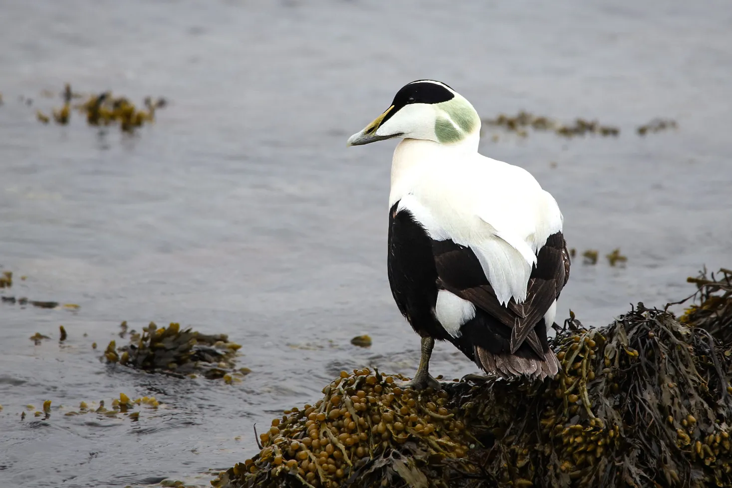 Die Eiderente ist die größte nordische Entenart und gehört zu den Meerenten. Sie nistet bevorzugt auf kleinen Inseln, Schären und in geschützten Buchten der Barentssee und des Varangerfjords. Während der Brutzeit zeigen die Männchen ihr kontrastreiches schwarz-weißes Gefieder, die Weibchen sind braun gefärbt und an Land perfekt getarnt. Die Vögel ernähren sich überwiegend von Muscheln und Krustentieren, die sie tauchend auf dem Meeresboden aufsammeln.