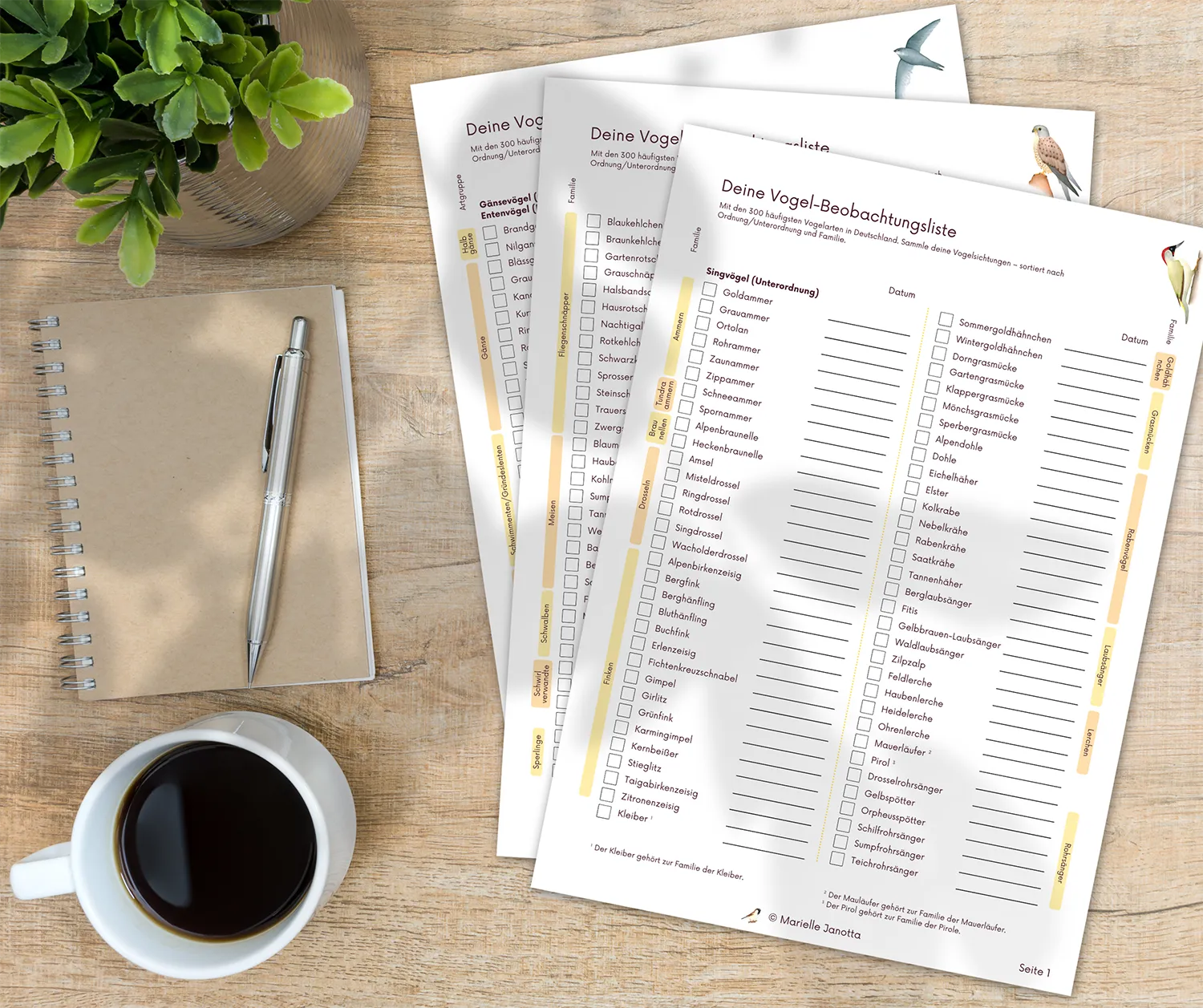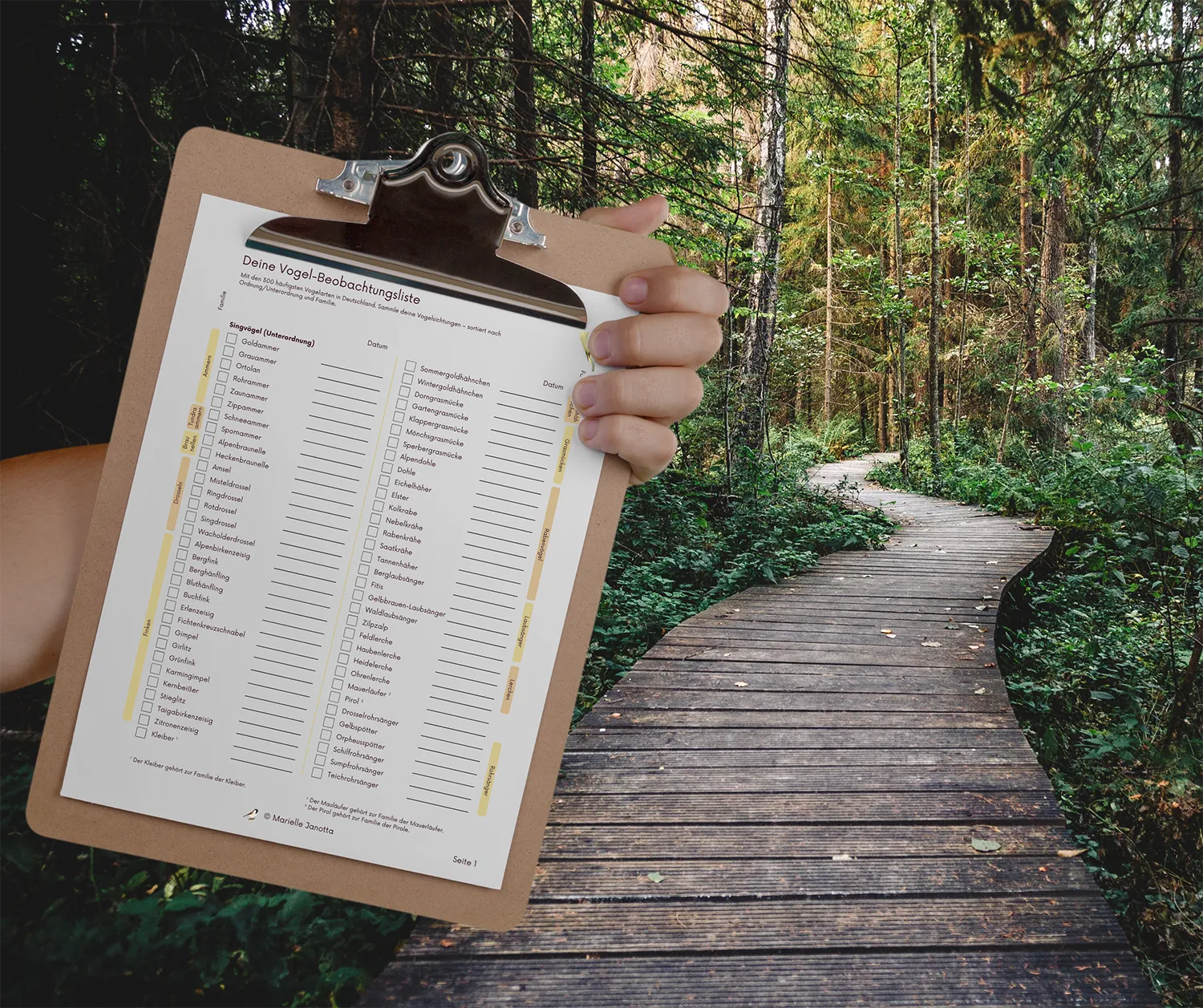 🐦‍⬛ Du kannst die Liste ausdrucken und zur Vogelbeobachtung mitnehmen.